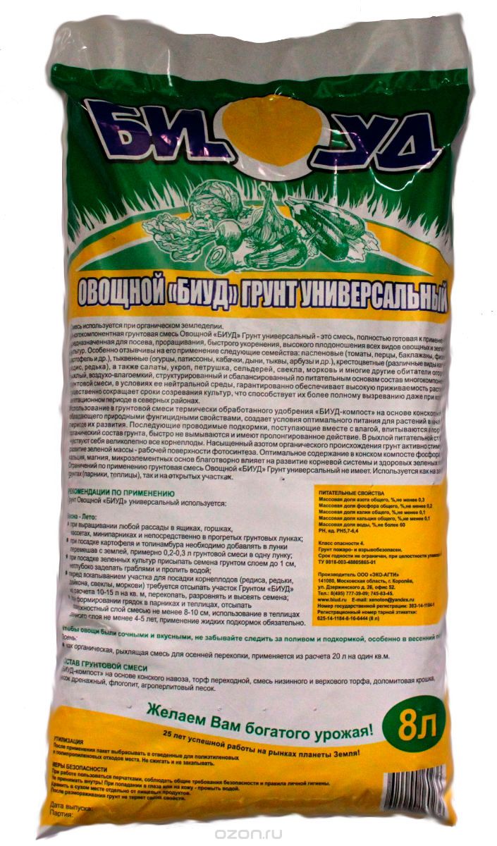 Грунт "Овощной универсальный" на основе биоорганических удобрений "БИУД".
