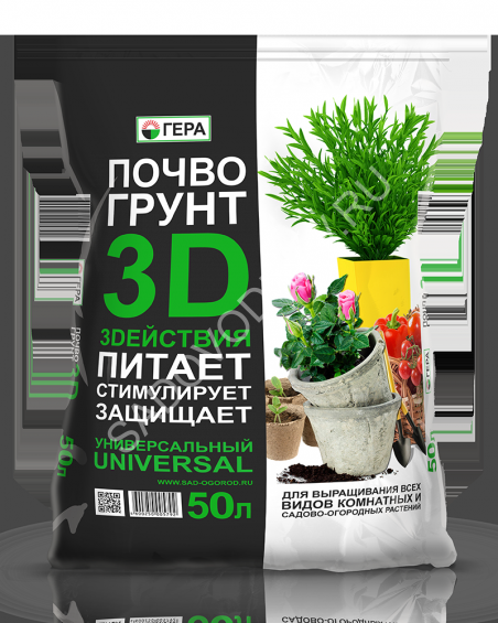 Почвогрунт ГЕРА 3D+ Универсальный 50 л 1...