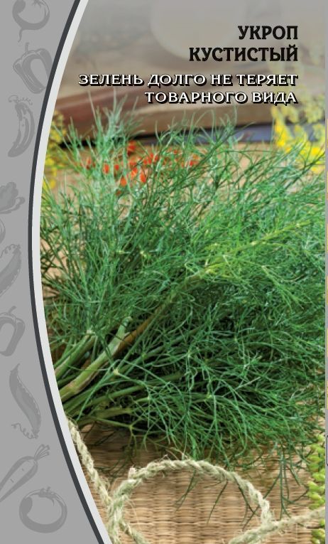 Среднеспелый (40 дней до уборки на зелень), холодостойкий, светолюбивый сорт. Растения компактные, густо облиствленные, высотой до 40см. В фазу цветения высота растений 150-180см. Листья темно-зеленые, сильно рассеченные, сочные, нежные, ароматные. Масса растения при уборке на зелень 10-12г, на специи – 18-20г. Ценность сорта: замедленное стеблеобразование, длительный период хозяйственной годности на зелень, высокая ароматичность и содержание эфирных масел.
